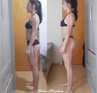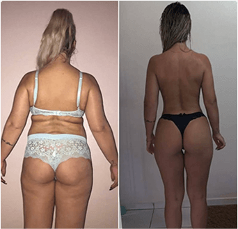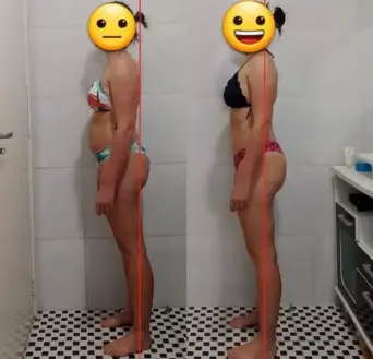 A Janaina empinou os glúteos e definiu muito em poucos meses, além de corrigir a postura e ficar muito mais confiante. É só comparar as fotos!
